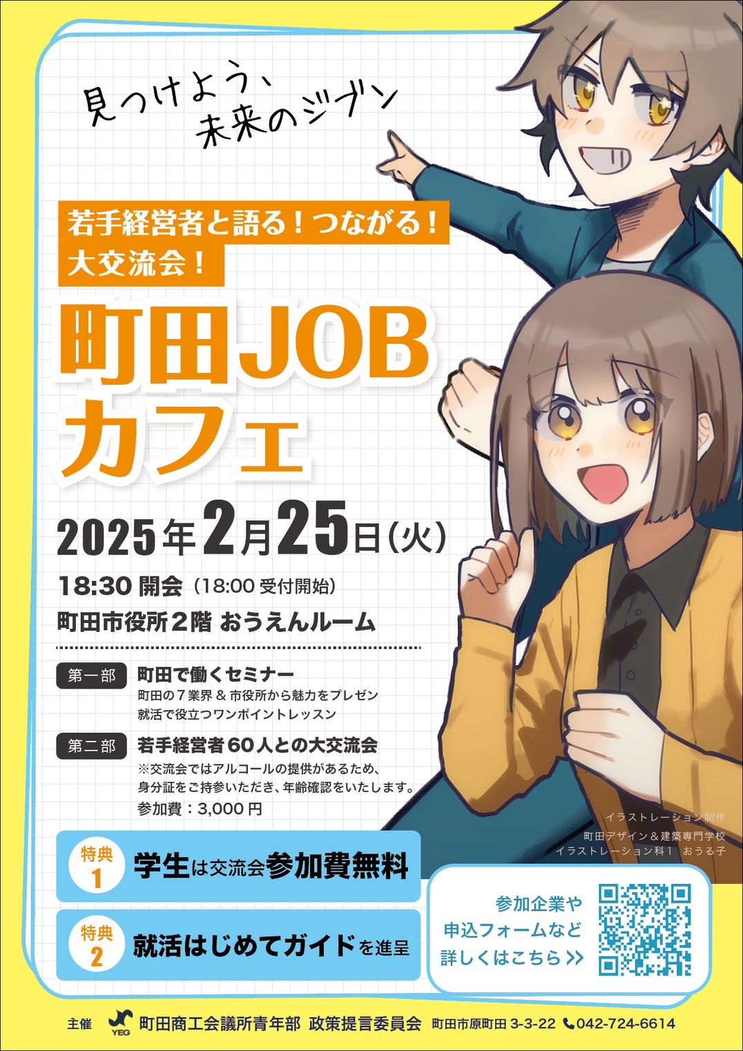 町田JOBカフェとは・・・ 「地域で働く」をメインテーマに、町田市内の若手経営者と町田市職員と大学生や専門学校生などの若者が交流する大イベント!!